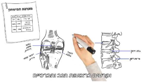 ‘The integration of women fighters’ (The IDF Fortitude Forum, August 2017). [Hebrew wording in the picture: Top Left corner: “The Security System”; Bottom left: “Anterior cruciate ligament”, “Cruciate ligament”, “Lateral collateral ligament”; Bottom right: “Herniated Disk”, “Spinal disc herniation”] (Supplementary material).