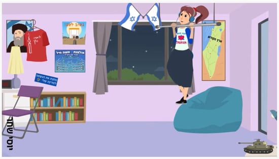 The examined videos against enlistment of national-religious young women were produced between the years 2017 and 2021 by three organizations representing the most conservative discourse in the religious-national population: Brothers in Arms [לנשק אחים]—Promoting the IDF’s Strength (established in 2005); The IDF Fortitude Forum (IFF) [הפורום לחוסן צה”ל] (established in 2006); Chotam [חותם]—Judaism on the Agenda (established in 2013). The struggle against military service for women covers a large portion of the agenda of the three organizations, as can be deducted from special items dedicated to the topic on their websites, Facebook pages, and video materials. Although this had not been their original purpose, in recent years, these organizations have also initiated the production of online videos distributed on YouTube and on social media as a sort of alternative media channel, raising voices not normally represented by central media channels (). These are short (1.5 to 3 min) videos characterized by a narrative structure (they tell a story), typical televisual and cinematic contexts, and stylistically presenting a combination of animation and photography (video or stills). The various common attributes in these videos, as well as their recurring themes, point to their forming a distinct discourse within a struggle that spans a range of cultural arenas.