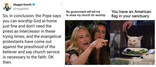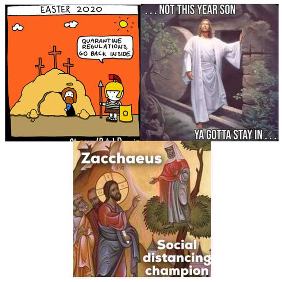 6. Discussion: Representations of Religion in Pandemic Social Distancing Memes