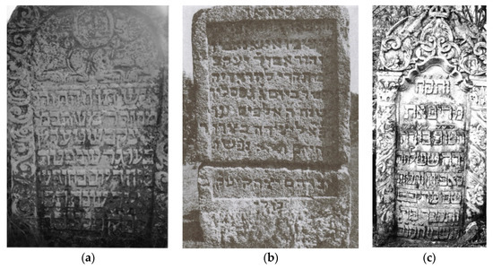 - Nosonovsky, Michael. 1999. Hebrew epitaphs of the 16th century from Ukraine. In Monuments of Culture: New Discoveries—1998. Moscow: Nauka, pp. 16–27. [Google Scholar]
