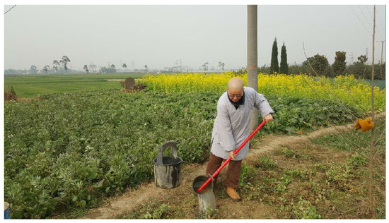 Interestingly, in mainland China, mahasati meditation practice has been interpreted by Xuzhi as a lineage of Chan, to make a connection with Chinese Buddhism. As mentioned by Rongdao in the previous Section, Luangpor Thong uses the cat and rat as an analogy for mindfulness and passing thoughts, to encourage meditators to diligently cultivate mindfulness. When the cat, as mindfulness, can be cultivated strong enough, it can catch the rat, as those defilements, and finally be liberated. This metaphor is named as a new Chan koan (gongan 公案) of “the cat of Luang Por” (longbomao 隆波猫), which follows the other four famous Chan koan in medieval China: “the biscuit of Yunmen” (yunmenbing 雲門餅), “the tea of Zhaozhou” (zhaozhoucha 趙州茶), “the scold of Linji” (linjihe 臨濟喝) and “the stick of Deshan” (deshanbang 德山棒).56 Moreover, a photo of Xuzhi working in the field at Shifosi was posted on the Mahasati Dynamic Meditation Center website, emulating the spirit of the ancient Chan master of “no working one day, no eating one day” (一日不作一日不食) (Figure 4). It tries to imply that practicing dongzhongchan does not greatly differ from Chan in the Han Chinese Buddhist tradition. It can also be one of the common features developed for adaptation in the contemporary Chinese context—a hybridity of the transnational and Chinese Buddhist style, due to the restriction of the socio-political situation, as I argue in my previous study (Lau 2020a, 2021b).