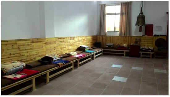 With an invitation from Rongdao, I visited Baolian Chan Monastery in Jiangxi, the first Chan nunnery I knew in contemporary China. Originally established in the Ming Dynasty by villagers for keeping peace at a spiritual small mountain at Hefeng Town 和豐鎮, Peace Temple 太平庵 has been a place for some visiting monks to stay. After the end of the Cultural Revolution, Bhikṣu Jiguang 繼光, a senior monk at Nanhua Monastery and an ex-villager, re-established the abolished temple as Baolian Chan Monastery, later Lianhua Chan Monastery. Just like many other monasteries, it conducts several daily practices, including morning services, evening services and having meals (guotong). However, the most striking thing is that they have a Chan hall (chantang) only run by nuns. When I stayed there in December 2016, Bhikṣuṇī Rondao, the abbess, kindly showed me the newly renovated three-level building. The first level was built as a traditional Chan hall (chantang) for practicing Chan (Figure 5 and Figure 6). Like many traditional chantang, it was square-shaped with meditation seats arranged in front of the walls. A maximum of 40 people could practice Chan together at the same time. As Rongdao told me, Bhikṣu Yanzhen, a well-respected Chan master in China, gave advice about the proper construction and routine chores of the chantang. The chantang, which is now in the tradition of Linzhi, is open daily for seven Chan sessions, and is supported by two nuns, Bhikṣuṇī Yanhui and Khema, who ring the gong and guard them with regulations. Since I left Yunfeng Monastery, I did not meet Khema again. As Bhikṣu Chengfeng disrobed and returned to lay life in 2016, Khema left Suzhou and traveled to explore suitable monasteries by joining meditation retreats. After meeting Rongdao, Khema finally came to Biaolian Monastery to support the daily routine chores at the chantang. I was delighted that Khema, who insisted on her status as an eight precept nun, could settle at a nunnery in the Chan tradition.