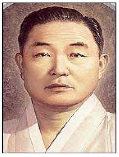 Hoedang (孫珪祥, Kyu-shang Sohn12, 1902–1963) was born into an ordinary family, and his father operated a local apothecary on Ulleungdo Island13 (鬱陵島, 120 km east of the Korean Peninsula). Hoedang was raised at a precarious time; the Korean Empire (the end of the Joseon dynasty: 1897–1910) was about to succumb to Japanese imperialism. The boy therefore grew up witnessing political oppression and cultural assimilation. During the transitional environment of the 1920s and 1930s, he saw the religious transformation that Korean Buddhism underwent, as well as the influence of Japanese Buddhism on Korean Buddhism—including esoteric characteristics (; ; ). Living through such a challenging time of political and religious change (as well as the death of his three children), motivated Hoedang to devote his mid-life years to creating a new religious movement. He started the movement after Korea regained its independence in the late 1940s, and his work was continued throughout the 1950s and early 1960s.