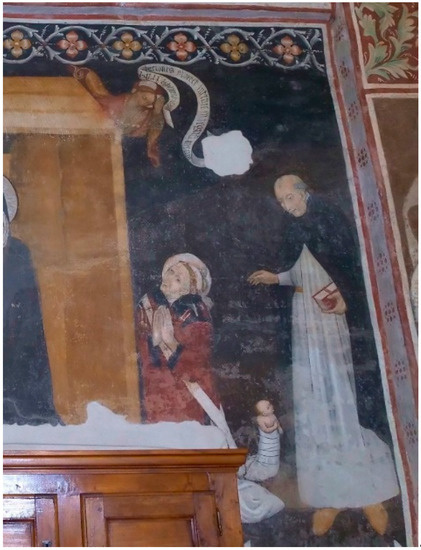 The communicative framework in the medieval period had three essential methods: orality, writings and images. Telling a story out loud, writing it down for later reading or painting it to the object of its contemplation implies, voluntarily or not, the creation of agreements and discrepancies among the resulting versions of the same event in each medium. The particularity of these three methods, with the hic et nunc offered by the preacher (D’Haenens 1983, pp. 227–28), the traditional unimpeachable value of the written text (scripta manent, verba volant) or the power of images (Freedberg 1989), participated in the evolution and transformation of the contents of the same story. For example, the preachers literally reproduced a biblical passage in their sermons, showing, in this specific case, the concordance between orality and literature. However, they could also reproach the artists of the time for the licenses they took when picturing that biblical passage. In this way, through the sermons, the divergence between the writings and the images had been made public. These concordances and divergences between the three aforementioned channels of expression are key to understanding the birth and diffusion of some late medieval stories, and even more so when several sources are preserved from the three methods of communication.1 This is the case in point of Vincent Ferrer’s vision, in which we can compare and contrast orality (sermons delivered by the Dominican friar) writing (Ferrer’s letter to Benedict XIII) and images (wall paintings in Macello).