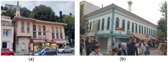 Waqfs are institutions of philanthropy and a type of spirituality pious icon in İslamic cities. Many services required in the city, such as religious and cultural services, education services, health services, infrastructure and public works, social security and support services, and philanthropy services, have been provided through funds established as waqfs (Çöteli 2016). The commercial sources (revenue sources), which were built in detail with the waqf system in the Ottoman period, sometimes located on different floors of the mosque structure and sometimes as independent structures from the mosque, started to be built on the lower floor for reasons, such as space shortages, in order to generate income for the mosque and its association (Figure 5, Figure 6, Figure 7 and Figure 8).
