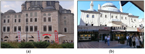 (a) Tezkireci Osman Efendi Mosque, İstanbul; (b) Şerefiye Mosque, Sakarya.