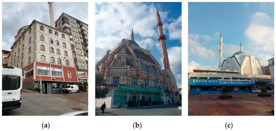 (a) Eminettin Mosque, Rize; (b) Tepecik Aksa Mosque, İstanbul; (c) Derince Yeni Merkez Mosque, Kocaeli.
