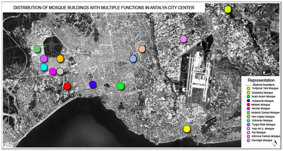 Antalya, the fifth most populous city in Turkey, is also among the top 10 cities with the highest number of mosques in Turkey (Presidency of Religious Affairs 2021). There are contradictions in the conformity of mosques to the zoning plans, their configuration, and their functioning, as is the case throughout Turkey. All mosques in Antalya where the mosque and trade function coexist have been selected as the examination universe.