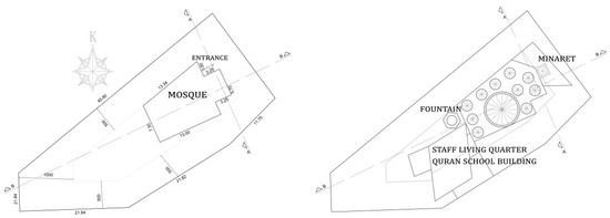 As retrieved from the archives of Muratpaşa Municipality, the Güzeloba Mosque’s layout plan includes only the mosque itself (Figure 10). The toilets and living quarters accommodating the mosque personnel, which is under construction in the north of the mosque, are not included in the layout plan, and the parking areas in the south and south-west of the mosque are not available.