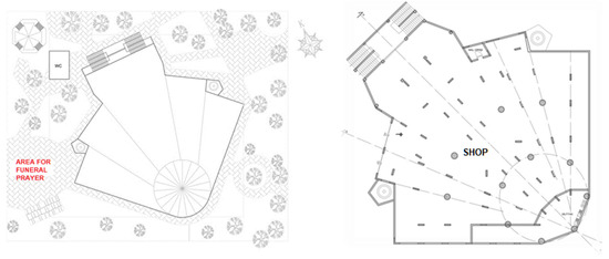 When the floor plans were examined, we detected that the shops on the south side of the mosque were not included in the licensed architectural projects (Figure 11).