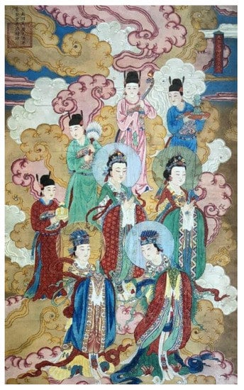 - Jin, Weinuo 金維諾. 2011. Zhongguo Siguan Bihua Quanji (Juan San): Mingqing Siguan Shuilu Fahui Tu 中國寺觀壁畫全集(卷3): 明清寺觀水陸法會圖 (The Complete Collection of Chinese Temple Murals (Volume 3): Paintings for Religion Rituals at Ming and Qing dynasty temples land puja). Guangzhou: Guangdong Jiaoyu Chubanshe 廣東教育出版社, pp. 69, 74. [Google Scholar]