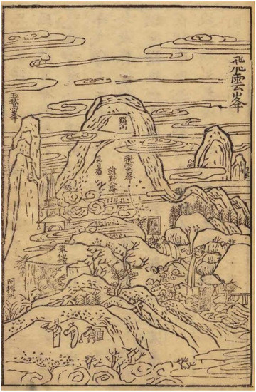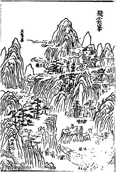 Image of the Feiyun Feng, 1607. Woodblock print. After Han Mingluan, Luofu zhi lue, 1.43a.