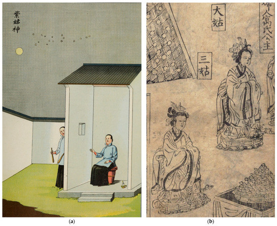 “Zi-Gu Goddess 紫姑神”: (a) “Zi-Gu Goddess 紫姑神” (Henri 1916, p. 126); (b) “Da-Gu” and “San-Gu”. Photo source: Nong Shu 农书 (1304).