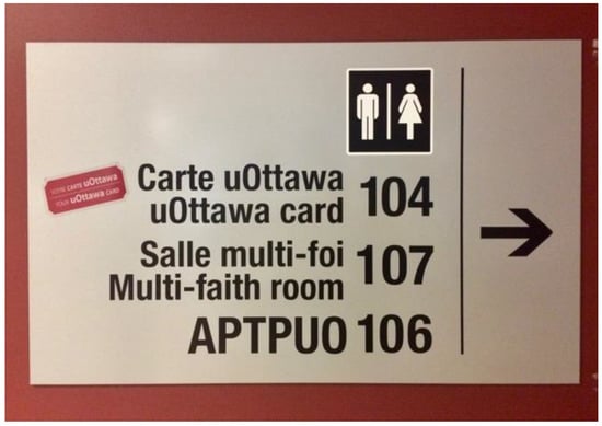 I have sought out all four, and found all but one discontinued. One of the rooms is now being used as a graduate meeting room; another two lack signage and, seemingly, occupants. The fourth, situated in the student union building, is still in operation. However, although it was created as a multifaith space and is still signposted as such (Figure 5), the demographics of use has made it a de facto and by default Muslim worship space over time.