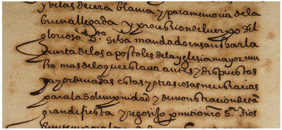 […] in memory of the good arrival and procession of the glorious saint’s body, the Door of the Apostles of the main church has been ordered to be widened much more than it was before, arranging and ordering these and other things necessary for the solemnity and demonstration of such a great festivity and rejoicing.(ACCV sing. 10113, 1599) (Figure 3)