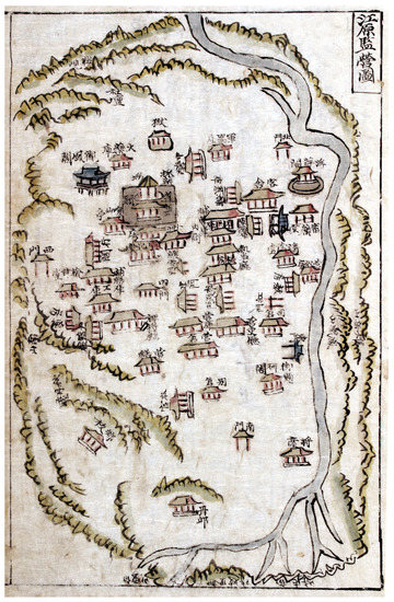 Map of Kangwŏn Provincial Office, Kwandong Gazetteer, Chosŏn period, 1820, Wŏnju City History Museum. Reproduced with permission from the Wŏnju City History Museum.