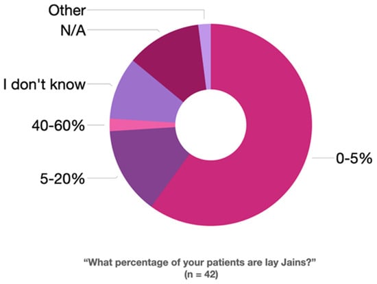Survey Question: “What percentage of your patients are lay Jains? (n = 42)”.