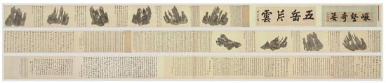 Wu Bin, Ten Views of a Lingbi Rock, 1610. Handscroll, ink on paper, (painting) 55.5 × 1150.0 cm; (colophons) 55.5 × 1387.5 cm. Photo: Courtesy of Poly Art Museum, Beijing ( ).