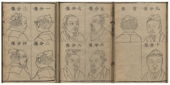 Facial angles for portraiture from Pictorial Compendium of the Three Powers, 1609. Woodblock prints on paper. Photo: Courtesy of München, Bayerische Staatsbibliothek.