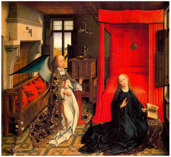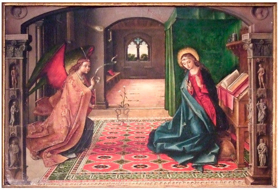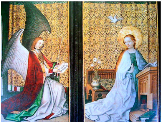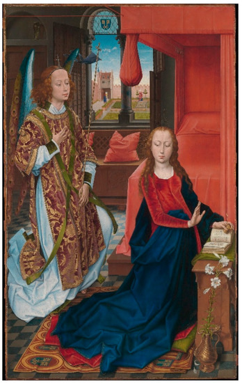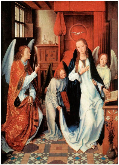 - Blum, Shirley Neilsen. 1992. Hans Memling’s ‘Annunciation’ with Angelic Attendants. Metropolitan Museum Journal 27: 43–58. [Google Scholar] [CrossRef]