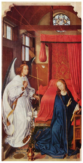 - Rousseau, Theodore, Jr. 1957. The Merode Altarpiece. The Metropolitan Museum of Art Bulletin 16: 117–29. [Google Scholar] [CrossRef][Green Version]