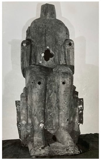 Back side of the wooden core of the statue of Sainte-Foy with a cavity for the deposition of the relic of the skull. Reproduced with permission of La Société des Lettres de l’Aveyron, Rodez.