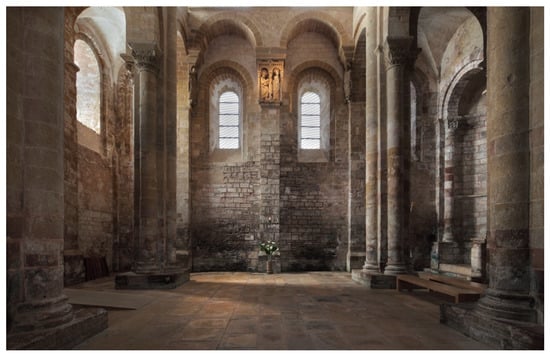 - Vergnolle, Elaine, Henri Pradaier, and Nelly Pousthomis-Dalle. 2011. L’abbatiale Romane de Conques. In 137 Congress Archéologique de France, Aveyron. Paris: Société Française d’Archéologie, pp. 71–160. [Google Scholar]