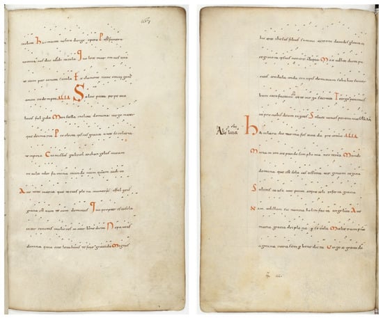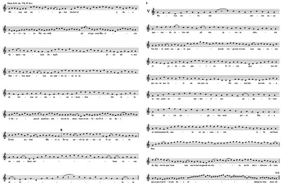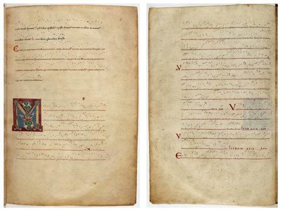 | 2 | For the content of the chants in Paris, BnF MS Lat. 1118, see https://cantus.uwaterloo.ca/source/123795 (accessed on 14 December 2022). |