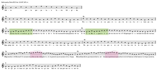 Salve Porta sequence from Paris, BnF, MS Lat. 1118, fols. 167rv. Transcription: Laura Steenberge.