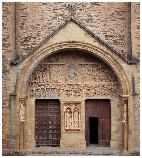 - Huang, Lei. 2014. Le Maître du tympan de l’abbatiale Sainte-Foy de Conques: État de la question et perspectives. In Études Aveyronnaises. Rodez: Société des lettres, sciences et arts de l’Aveyron, pp. 87–100. [Google Scholar]