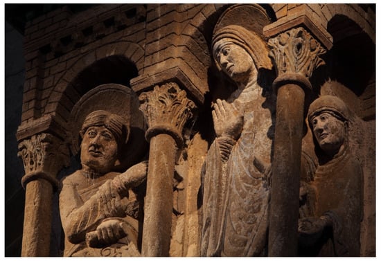 - Prado-Vilar, Francisco. 2021. The Marble Tempest. Material Imagination, the Echos of Nostos, and the Transfigration of Myth in Romanesque Sculpture. In Icons of Sound: Voice, Architecture and Imagination in Medieval Art. Edited by Bissera V. Pentcheva. New York: Routledge, pp. 152–205. [Google Scholar]