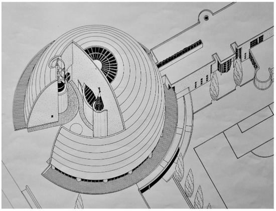 What did the shape of the dome mean for Dahinden? Why did he choose this form for the plan of a Catholic church? By referring to his previous works, he estimated it to be the most adaptable solution for some typologies of spaces, whose function, in this case, is to gather the worshippers under the same roof. Although this gesture seems to be radical (but not provocative), the architect paid tribute to the masters’ tradition, since the cupola is the universal emblem of the historical temples. Nevertheless, it is more here: “the space, the sky, the earth are spherical”13, declared Dahinden significantly. Since the early drafts of the church produced in spring of 1988, now in the parish archive in Varese, he had in mind the kosmos and the celestial vault as a deep concentration of significances. One of the repeated qualities of his design interventions—especially in those of a religious nature—is the search for the spiritual dimension accessible to all. Once, the Danish architect Steen Eiler Rasmussen wrote that “art should not be explained; it must be experienced” (Rasmussen 1964, p. 9), thus, it seems that the Swiss colleague relocated the same concept into architecture. In his projects, Dahinden looked for the gestalt that he eventually found through various formal solutions of a spatial type but also a practical one, such as the familiarity with the modern materials and techniques. As a matter of fact, in the case of the Italian church, both the client and the designer aspired to give birth to a temple which would have been accessible forever (Brigatti 1997a, p. 108).