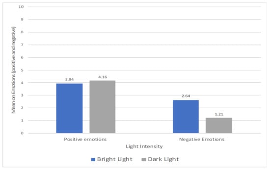 However, the results in this particular case study show that light intensity had more effect on the negative emotions in the bright scenario [(t (1,48) = 3.97