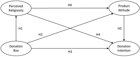 Religious symbols have been regarded as an effective informational determinant to predict charitable behavior based on the theory of reasoned action (). Relevant research reports that the positive impact of religious symbols presented on advertising is mediated by perceived religiosity to provoke the intention to perform actual behaviors (; ). Other media, like a touchable product such as a donation box affecting the behavioral performance, gains little attention. Previous scholars () construe that the appearance of a donation box positively influences donors’ actual behavior. Therefore, it is reasonable to anticipate that a donation box with proper religious symbols contributes to increasing the attitudinal intention to perform donation.