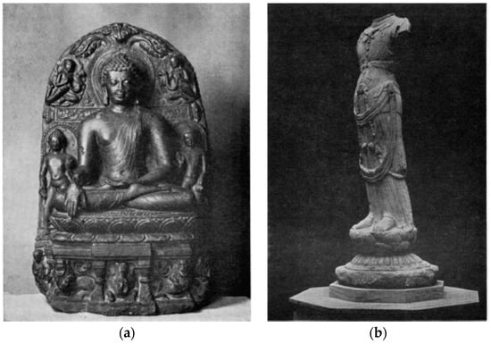 The original images of the lotus pedestals. (a) Buddha statue, Indian, Pala Period; (b) Kuan Yin statue, Chinese, Sui or Early Tang Dynasty (Images are as part of the Metropolitan Museum of Art’s Open Access policy).