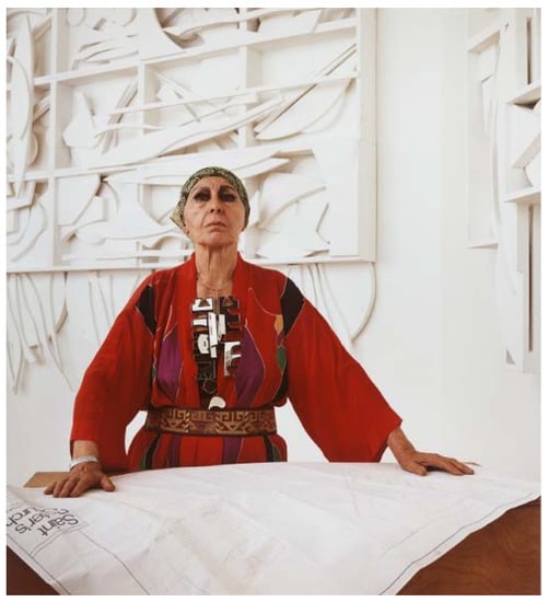 - Glueck, Grace. 1976. White on White: Louise Nevelson’s “Gift to the Universe”. The New York Times. October 22. Available online: https://www.nytimes.com/1976/10/22/archives/white-on-white-louise-nevelsons-gift-to-the-universe.html (accessed on 16 November 2021).