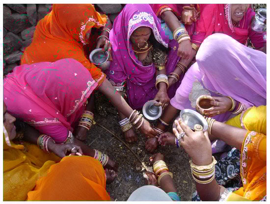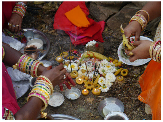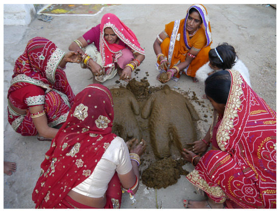 - Notermans, Catrien. 2019. Prayers of cow dung: Women sculpturing fertile environments in rural Rajasthan (India). Religions 10: 71. [Google Scholar] [CrossRef] [Green Version]