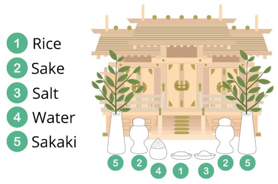 - Sugihara Jinja 杉原神社. n.d. Go-shinshu ni tsuite 御神酒について. Available online: http://www.cty8.com/sugihara/trivia12.html (accessed on 10 February 2022).