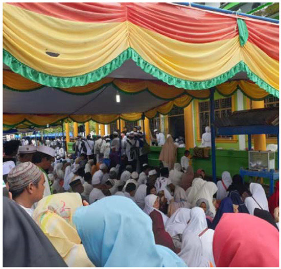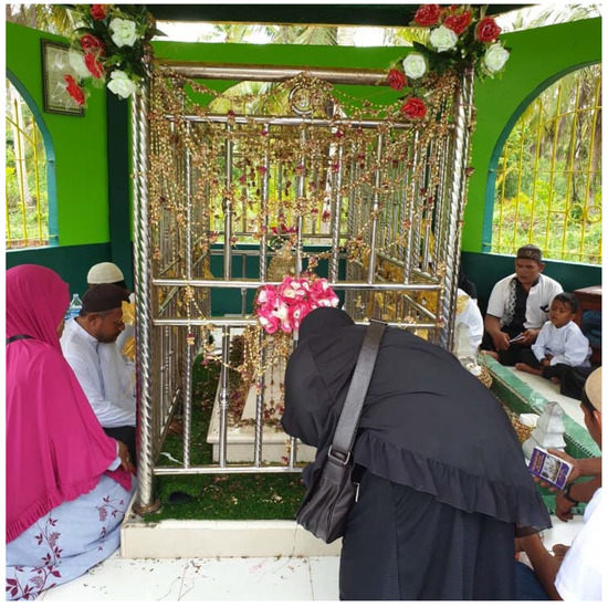 Figure 2). The pilgrims mainly came from districts in Riau province, while others came from the neighboring regions of Sumatra, such as Jambi, North Sumatra, and West Sumatra; from South Borneo (Kalimantan Selatan); and from Sulawesi (Celebes). Some pilgrims had also traveled from Malaysia. Similarly to other pilgrimages to the graves of the renowned saints on Java Island, some pilgrims came to Tembilahan as part of a group of people organized by travel agents, while others just arrived with family members.