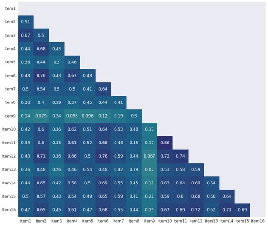 | Item | Kaiser–Meyer–Olkin MSA | Factor Loadings in EFA | Uniqueness in EFA |