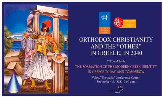 An excellent example of the attempt to shift the center of gravity of the Church away from the nation and towards the ordinary ‘Other’ are four round tables organized by Volos Academy for Theological Studies in September of 2021 (see Volos Academy 2021). The titles of these meetings are characteristic in this respect: ‘We and the “other”: Facts and perspectives for Hellenism and Orthodoxy’; ‘The formation of the Modern Greek identity in Greece of today and tomorrow’; ‘The secularization of the State and society and the witness of the Church’, and ‘Islam in Greece and Europe’. Although these events were organized within the framework of the National Committee ‘Greece 2021’,12 namely as part of the celebrations for the anniversary of 200 years since the Greek Revolution of 2021, their orientation is quite different from the ones we have seen in the previous section. As it is stated in the public announcement of these four tables: