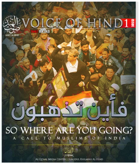 Figure 6. The cover of ISIS’s 1st edition of Voice of Hind, showing Muslim protesters in Delhi.