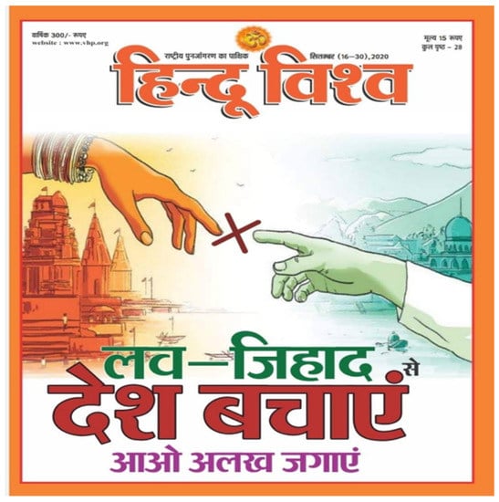 Figure 12. VHP’s magazine Hindu Vishwa’s September edition titled ‘Save the country from Love Jihad, Let’s create awareness’.
