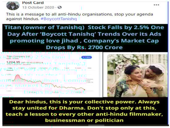 134. We Support Arnab Goswami. 2020. What #tanishq is showing. Facebook. October 12. Available online: https://www.facebook.com/wesupportarnab/posts/184058679958954 (accessed on 11 April 2022).