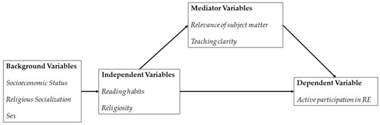 On the far right of the model is the dependent variable of the study, active participation in religious education (RE), which here means a committed engagement with the learning tasks of the lesson. In line with the definition of social inequality in education formulated above (see Section 1.1), the degree of active participation is understood here as an indicator of learning opportunities.
