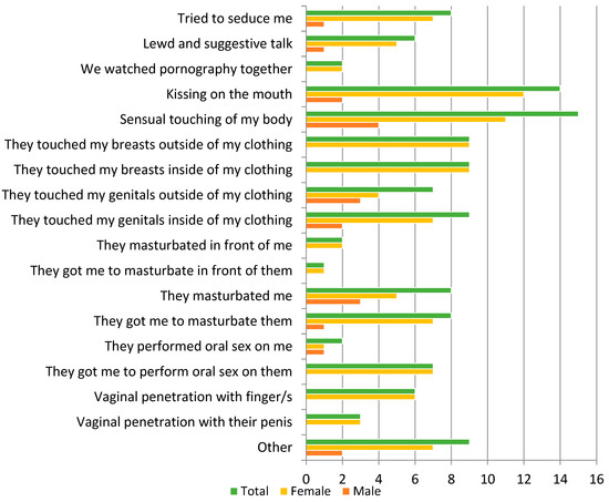 These include criminal rape, penetrative and non-penetrative sexual activities, through sexual harassment, to obscene phone calls, and sexting, to sexually suggestive jokes and conversations, to inappropriate hugging and grooming behaviours (Tschan 2014, p. 46; Loftus 1994, pp. 28–31). All are included in this definition because subtler behaviours are often masking grooming behaviours that are the first steps to more serious abuses (Bourke et al. 2012, pp. 2405–6; Garland and Argueta 2010, pp. 4–5). As well, all are capable of producing harm in their own right anyway (Loftus 1994, pp. 28–31; de Weger 2016, pp. 50–59, 151–76).