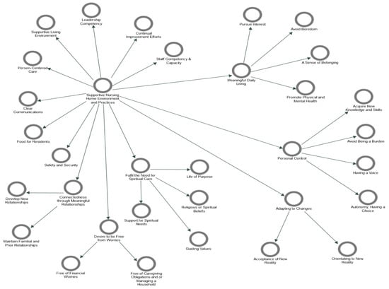 Concept map of the themes and sub-themes for Joy in Living experiences in nursing homes.