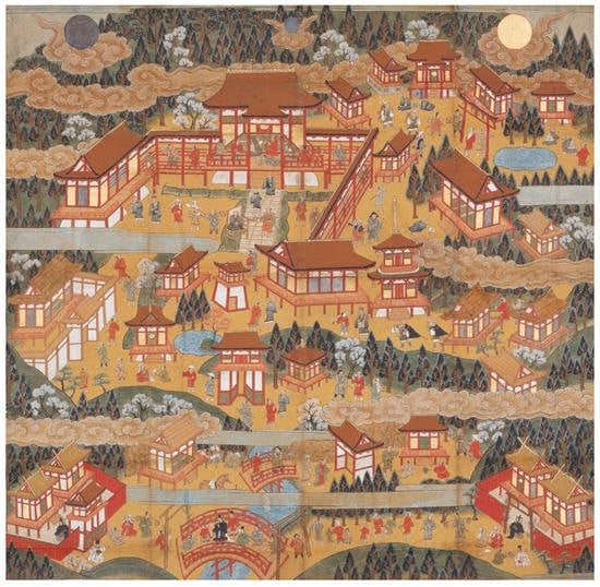 Ise Pilgrimage Mandala, late 16th century, hanging scroll, ink and colors on paper, 67 ½ × 73 ¼ in. (171.4 × 186 cm). Jingū Chōkokan Museum, Mie Prefecture, Japan.