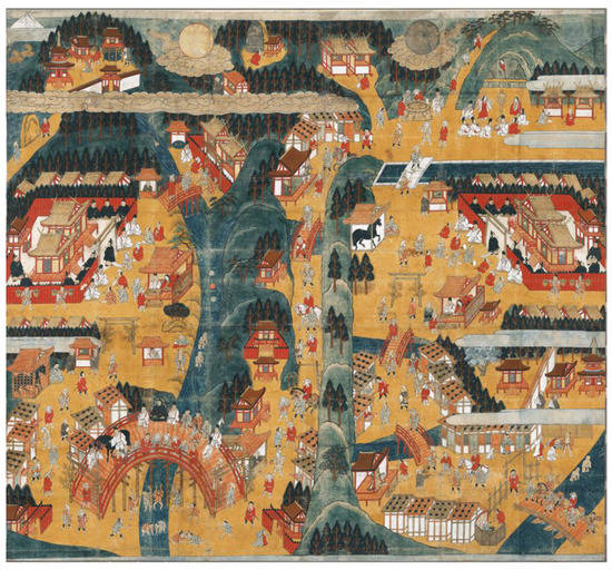 - Morse, Samuel. 2009. Pilgrimage for Pleasure—Time and Space in Medival Japanese Painting. In Negotiating Secular and Sacred in Medieval Art: Christian, Islamic, Buddhist. Edited by Alicia Walker and Amanda Luyster. Burlington: Ashgate. [Google Scholar]