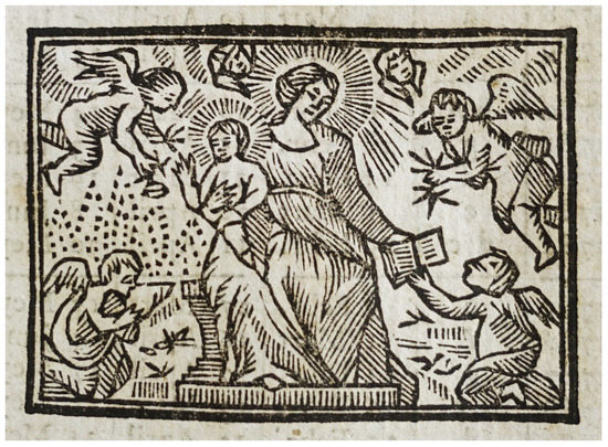 The focus on the Passion and the Cross was not exclusively practiced at mass, but was also, in a general sense, a prominent part of seventeenth- and eighteenth-century devotion. It was a basic disposition for any devout Catholic, expressed in the devotions to the suffering Christ, such as the Passionals, the Five Sacred Wounds, the Passion Clock, the Way of the Cross, and the Passion rosary. Such devotions were practiced everywhere, and they materialized in chapters, books, or leaflets, creating a considerable body of ascetic literature. The wish to relive the Passion was a constant and fundamental feature of seventeenth-century spirituality, the faithful happily sharing the suffering of Christ (see Chédozeau 1996, p. 214) (Figure 8).